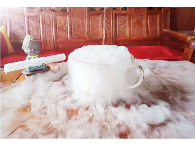 2、用于制作舞臺效果,由于干冰可以直接升發為低溫、干燥的二氧化碳氣體,所以可以形成虛擬的云霧效果,常用于舞臺表演之用。