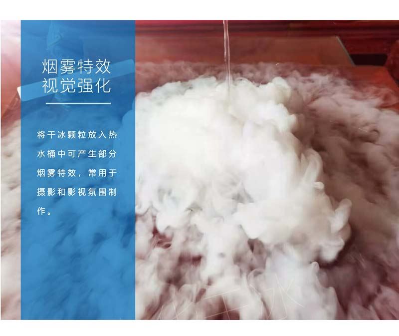 產品描述:由于干冰可以直接升發為低溫、干燥的二氧化碳氣體,所以可以形成虛擬的云霧效果,常用于舞臺表演之用。