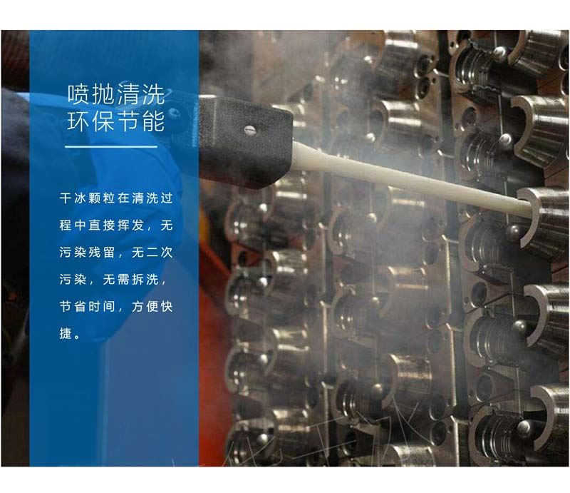 3、用于工業清洗,由于干冰容易升華,所以在工業生產中可以用于模具表面的臟污清洗等,且對設備無損害。
